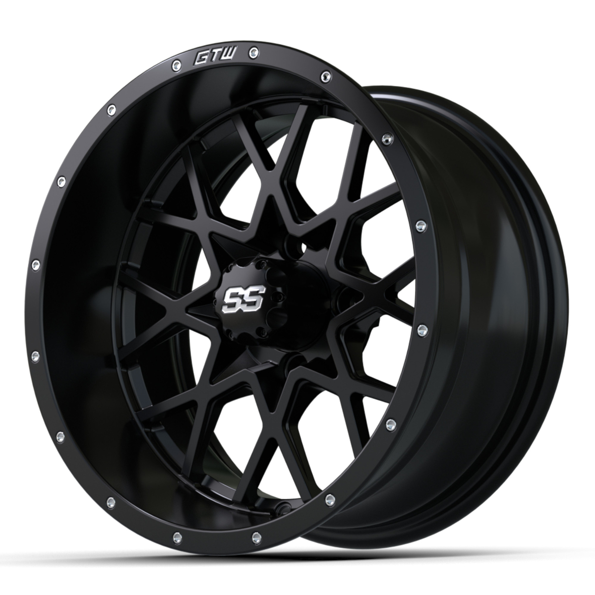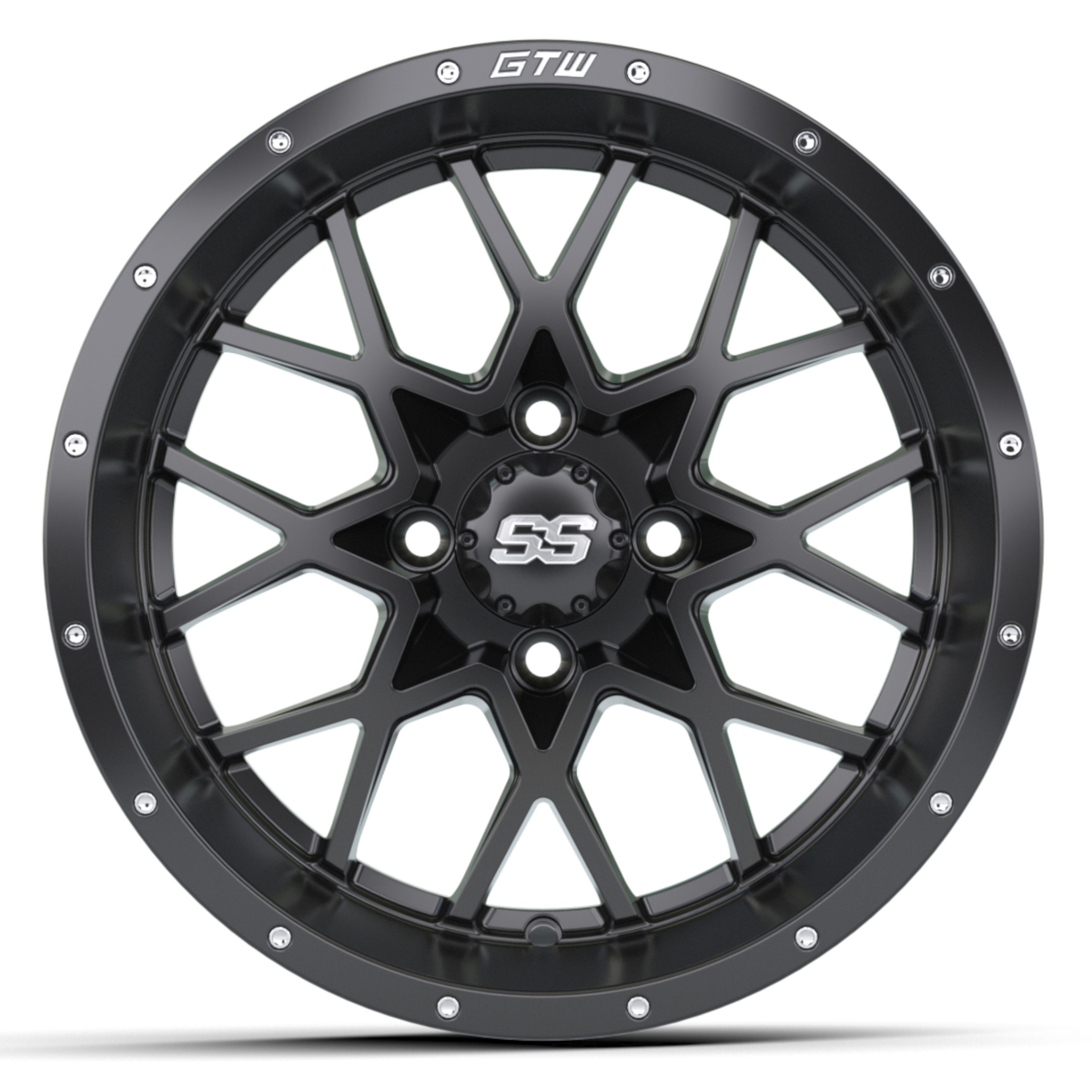GTW® 14x7 Vortex Wheel now available in a Matte Black finish. It is constructed of solid cast aluminum for maximum strength and minimum weight. The GTW® Vortex wheel offers an exclusive GTW® Mesh-Spoke design, deep rim lip, and two-piece look chrome studs. The Vortex pairs great with our premium line of tires and accessories